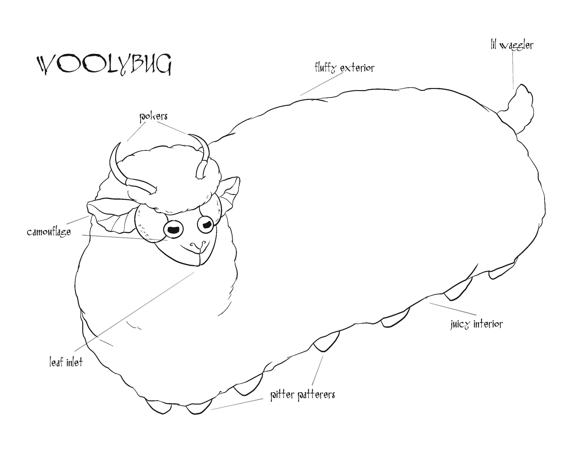 Woolybugs are the most commonly farmed creature throughout the Known Worlds. They survive on green plants, grass, leaves, etc. If it’s green and planty, they eat it. They are also quite docile, as they have no real natural defenses save their tiny horns. They resemble a sheep and a catapillar, some growing quite long, and many little hoofed feet underneath their wooly carapace. The wool can be harvested year after year for trade, keeping many a mountaineer warm at night. Woolybug wool is second only to Cotton, but more manageable as cotton plants are so large and only a few plants can be grown on a given acre. Their meat is fatty and succulent, and you can slice it quite easily into very large steaks, but never serve the butt of a Woolybug, that’s where the poop comes out.